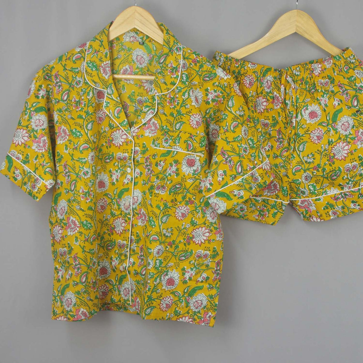 Short Cotton PJ Set With Pouch - Yellow Floral
